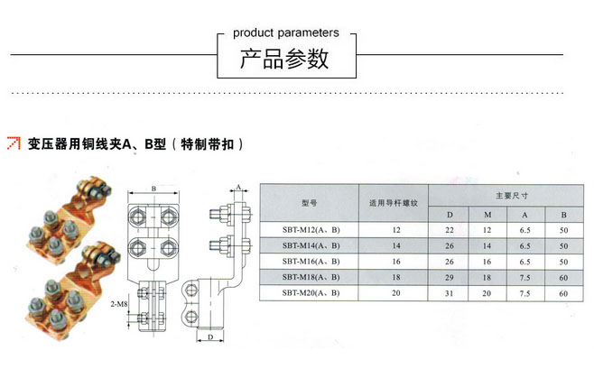 SBT-M20 變壓器平板線夾