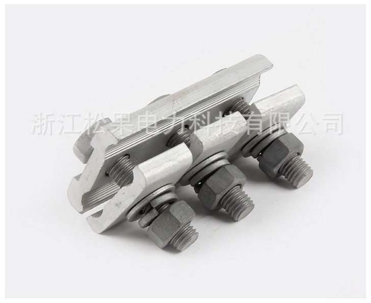 線夾主要用于變電所母線引下線與電氣設(shè)備(如變壓器,斷路器,隔離開關(guān),穿墻套管等)的出線端子連接,按下線與安裝電氣設(shè)備端子所成角的不同分為0°、30°、90°三種。本線夾采用螺套加側(cè)開縫設(shè)計(jì),線夾安裝在設(shè)備導(dǎo)桿上后,再擰緊開縫緊固螺栓,具有電氣接觸面積大,接觸緊密牢固等優(yōu)點(diǎn)。